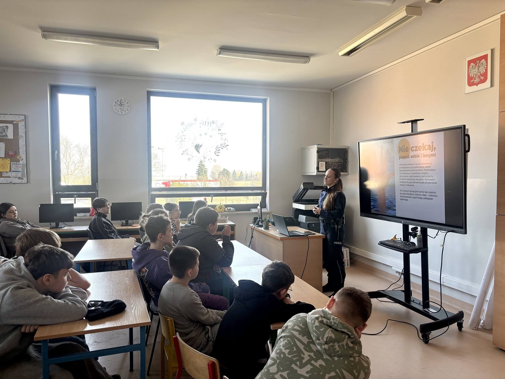 Podczas spotkania uczniowie dowiedzieli się, jakie zagrożenia mogą pojawić się w sieci, jak reagować na niebezpieczne sytuacje oraz gdzie szukać pomocy, jeśli staną się ofiarą przemocy lub cyberprzemocy. Była to cenna lekcja odpowiedzialnego i świadomego korzystania z internetu.