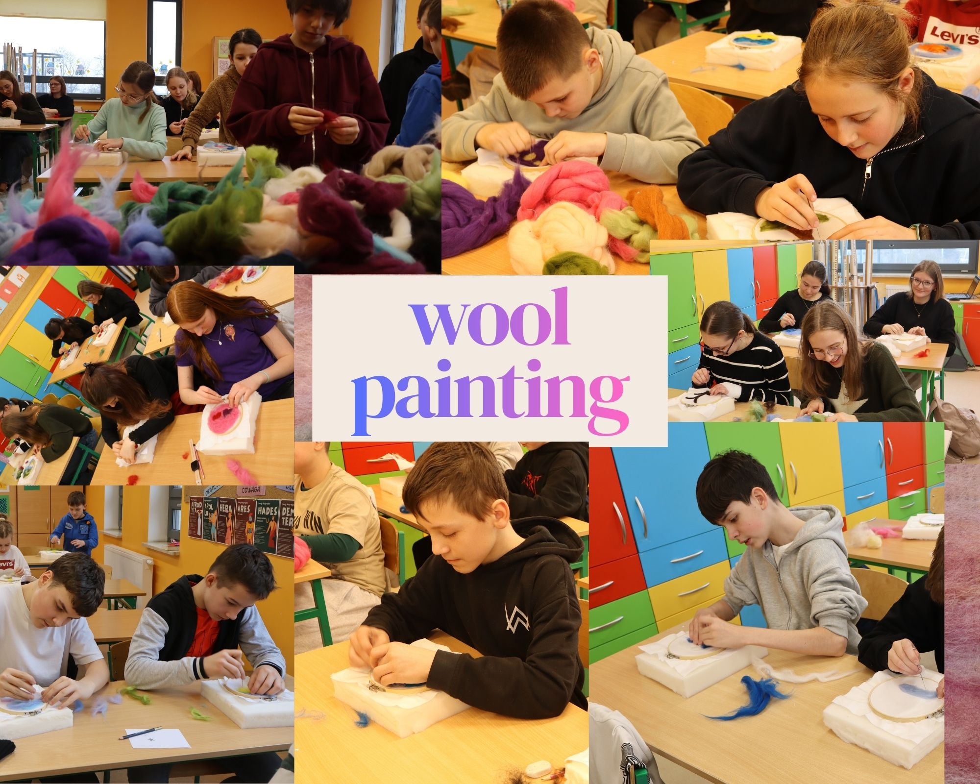 Niełatwą sztukę wool paintingu próbowali uczniowie klas 4-8. Nie wszyscy wierzyli w swoje umiejętności, ale obrazy „malowane wełną” wyszły im po mistrzowsku…kreatywności i wyobraźni nie zabrakło nikomu.