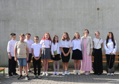 Rozpoczęcie roku szkolnego miało i w tym roku wyjątkowy charakter, ponieważ odbyła się uroczystość pasowania pierwszoklasistów na uczniów. Panowała podniosła atmosfera, a dzieci w odświętnych strojach z dumą powtarzały słowa ślubowania. Najmłodszym uczniom towarzyszyła zarówno– radość i ekscytacja z nowego etapu w życiu, ale też lekka trema i niepewność przed tym, co ich czeka. Rodzice i nauczyciele z uśmiechem obserwowali wzruszające chwile, pełni dumy i nadziei na owocny rok szkolny. Uroczystość zakończyła się wspólnymi brawami i symbolicznym wpisaniem pierwszoklasistów do grona społeczności szkolnej. Starsze klasy również z radością powitały nowy rok szkolny. Po wakacyjnej przerwie uczniowie spotkali się ze swoimi kolegami, koleżankami i nauczycielami. Towarzyszyła im ciekawość, jakie wyzwania przyniesie kolejny rok nauki, ale też entuzjazm związany z powrotem do szkolnej codzienności. Na twarzach starszych uczniów widać było zarówno uśmiechy, jak i refleksję, że każdy rok przybliża ich do kolejnego etapu edukacji. Trzymamy za wszystkich naszych uczniów kciuki i życzymy powodzenia i wytrwałości w nowym roku szkolnym.